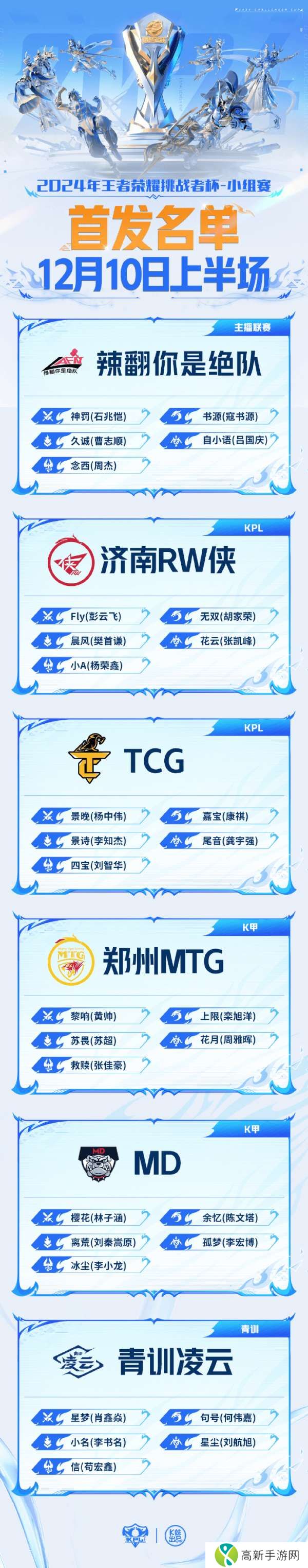 2024年王者荣耀挑战者杯 小组赛W1D4【首发名单】送达 !