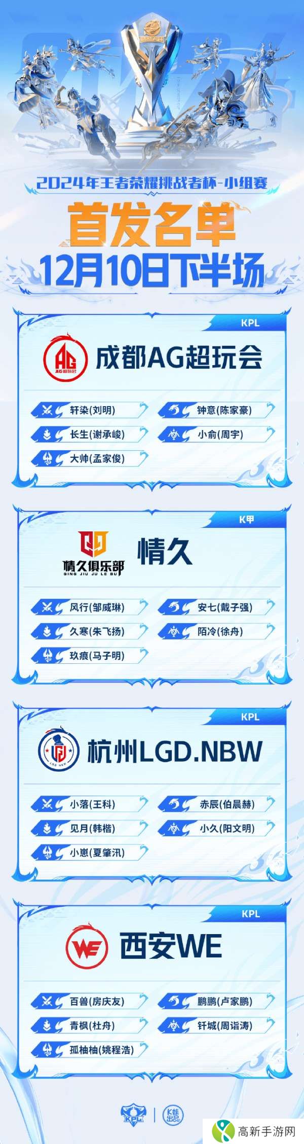 虎扑12月10日讯 [今日首发]久诚Fly赛场久别重逢,WE钎城首发,AG迎战情久!