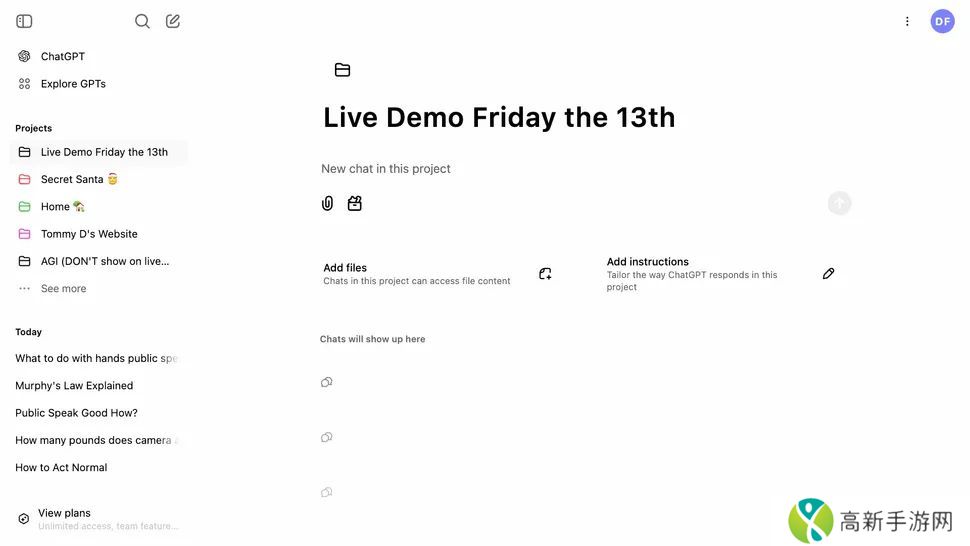 本站 12 月 14 日消息,“OpenAI 12 天”活动进入第 7 天,OpenAI 公司为 ChatGPT 带来了 Projects 功能,支持用户上传文件、设置自定义指令、分组聊天和数据等,让