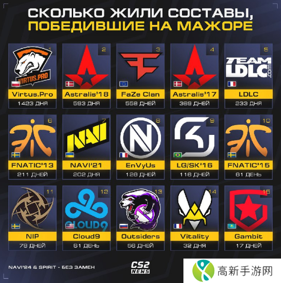 当前位置:首页>手游攻略> Major夺冠就变阵?Gambit最短命,VP最长久
