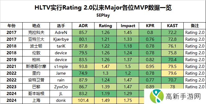 donk在今年年初的IEM卡托维兹赛事中不仅拿到了MVP,还追平了NiKo在顶级赛事中创下的最高Rating。