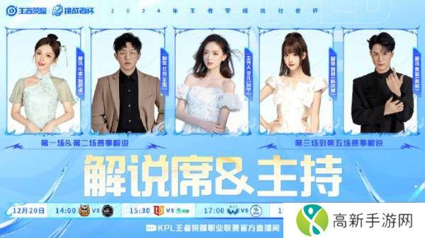 解说席&主持人:解说小鹿 (陆舒媛)、北岛bbb (王东)、灵儿chili (刘宁)、解说琪琪 (杨泽琪)、GK黄色超人oye (黄超)