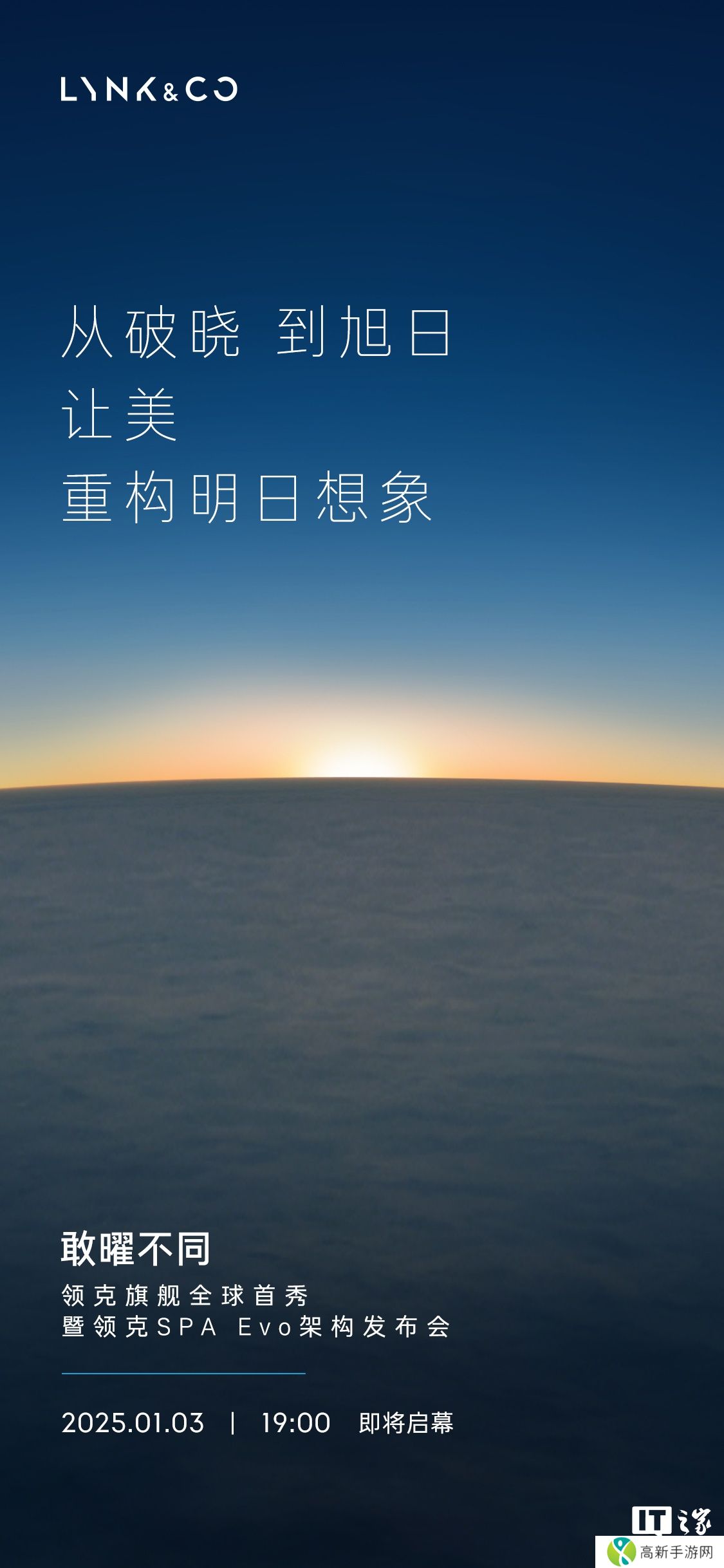 本站 1 月 1 日消息,领克汽车官方今日发文宣布,领克旗舰全球首秀暨领克 SPA Evo 架构发布会定档 1 月 3 日 19:00 举行。