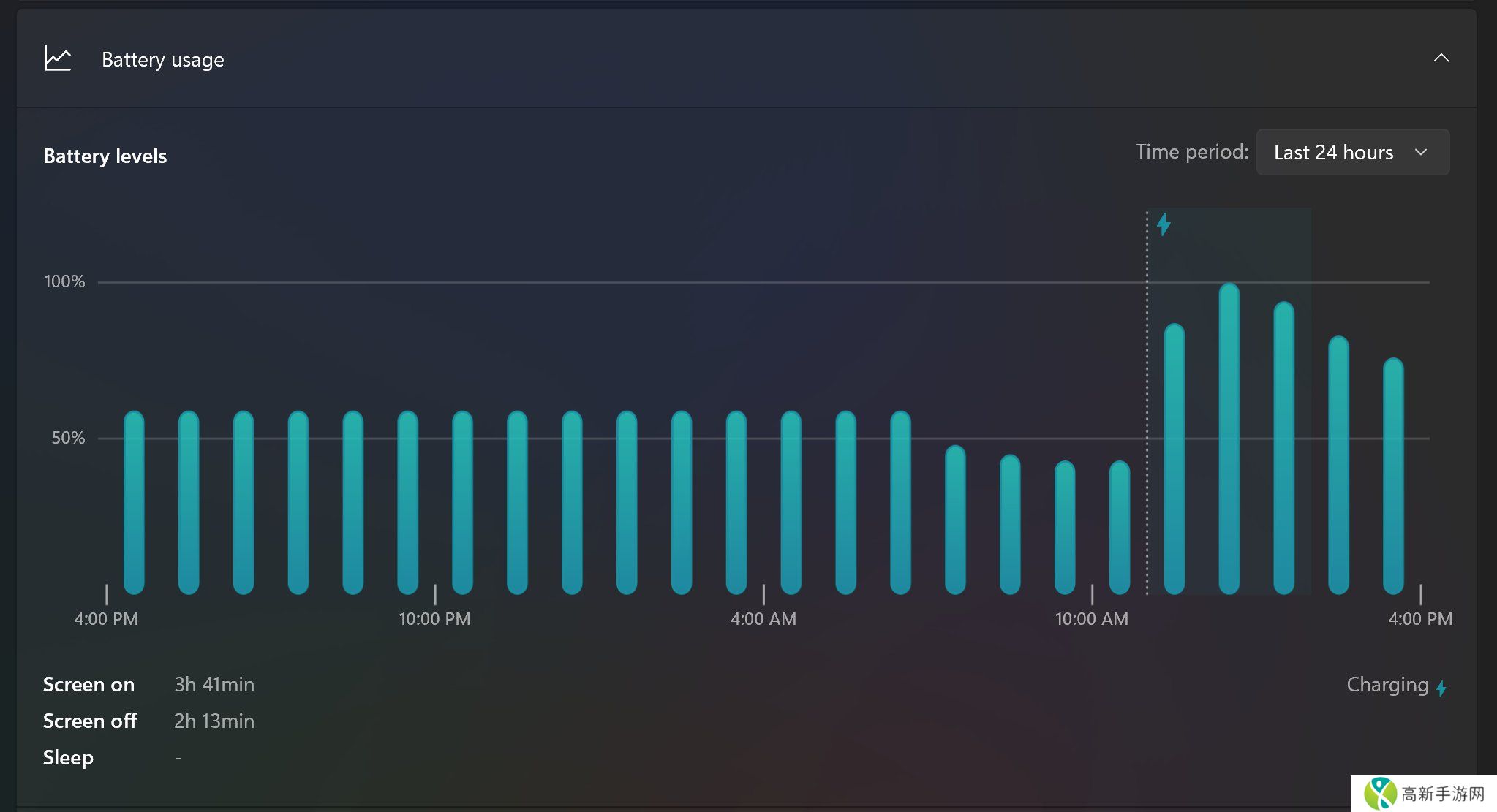 此外,微软还悄悄改进了电源用量图表,现在用户可以查看自己的设备在特定时间段使用的具体电量。