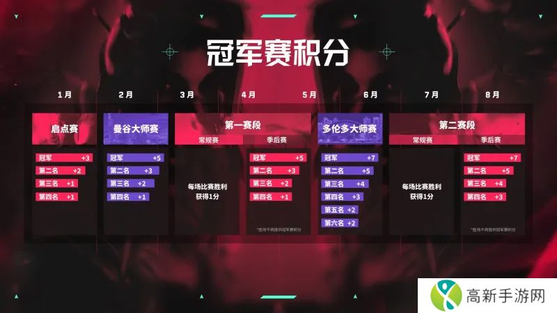 十支VCT CN联赛长期合作伙伴队伍与两支VCT CN联赛临时席位队伍将齐聚一堂,角逐启点赛阶段冠军!启点赛冠军将获得3分的冠军赛积分,亚军获得2分,第三名获得1分,第四名获得1分。启点赛冠、亚军将分别以VCT CN赛区一、二号种子的身份,出征本赛季首场大师赛——曼谷大师赛。