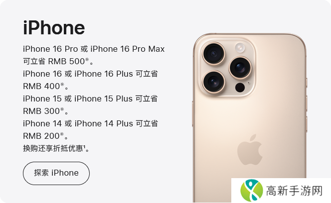 iPhone 16 Pro 或 iPhone 16 Pro Max 可立省 RMB 500。