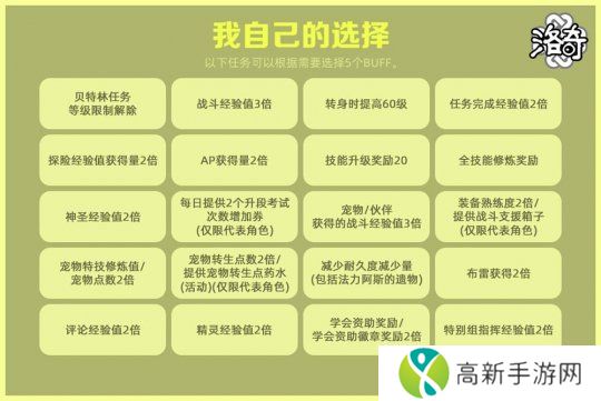 在以下所有BUFF中,自己选出本周最需要的5个BUFF吧!