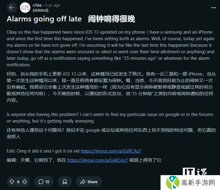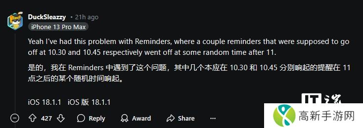由于数百万用户每天依赖 iPhone 闹钟来提醒自己起床工作或上学,这一故障的影响可能是灾难性的。例如,一位用户提到,由于闹钟未能按时响起,他错过了一场重要考试,并决定改用实体闹钟以避免类似情况再次发生。此外,其他 Reddit 用户还反映,内置的“提醒事项”应用也存在任务未能按时提醒的问题,这表明故障不仅限于苹果的“时钟”应用。
