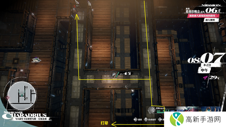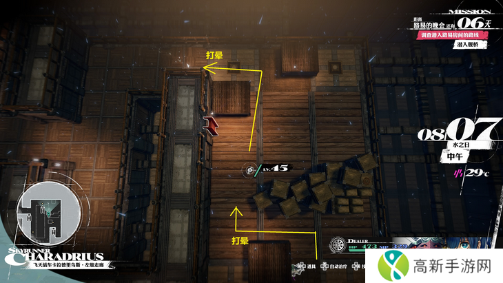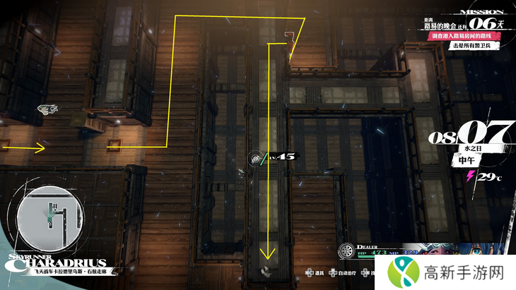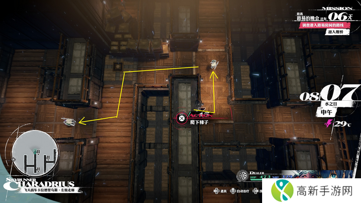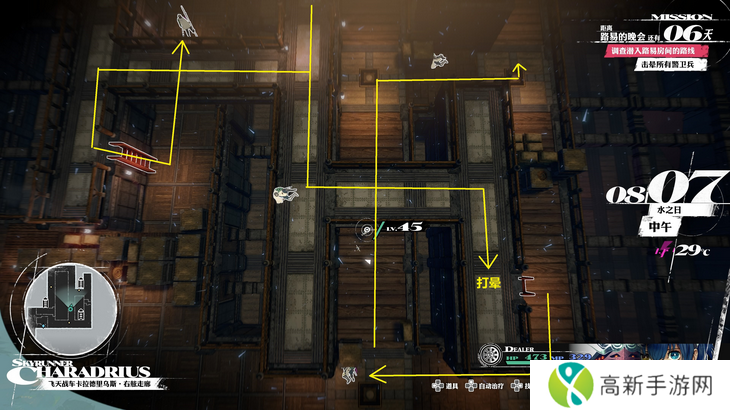 跑到出口附近,从楼梯下去,后半部分按照下图黄线,先打晕一个士兵后与灰羽汇合。