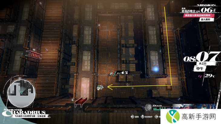 《暗喻幻想:ReFantazio》中的军港卡拉德里乌斯是游戏里比较复杂的一个区域,而进入这个区域就需要进行潜入,首先来到士兵休息区,先往前走上梯子,里面有个蓝色光点是武器。