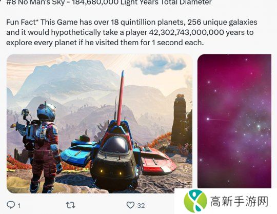 这个游戏中有超过18千万亿个行星、256个独特的星系,假设玩家在每个行星上访问1秒钟,则需要 42302743000000年才能探索完。
