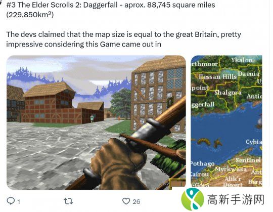 6.《上古卷轴2》,22万9580平方公里(开发者表示地图面积相当于整个英国)