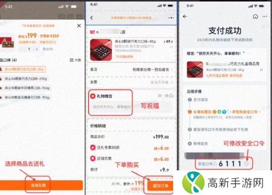 据悉,部分产品“支持送礼”,点击“去送礼”,完成下单支付(不用填写收货地址),点击送给朋友,通过淘口令、二维码等方式分享给朋友,即可完成送礼物。