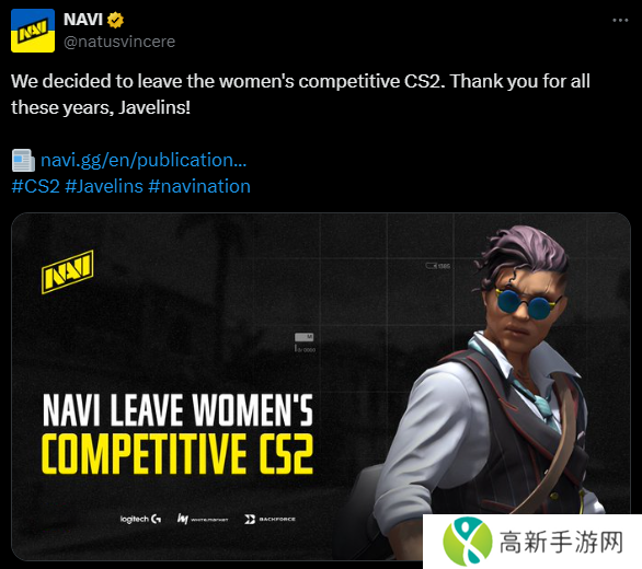 “NAVI电子竞技俱乐部已决定退出女子反恐精英竞技项目。目前,该电竞领域的商业模式似乎难以为继,无法进行长期规划。