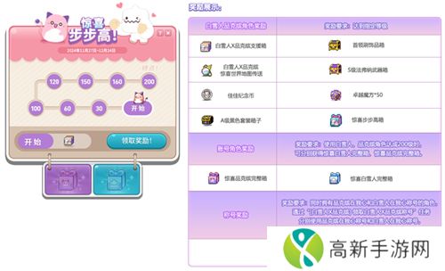 11月27日至12月24日,领取[白雪人X品克缤]惊喜步步高!任务,达到特定等级后领取对应的任务并完成,即可获得多种丰厚奖励。