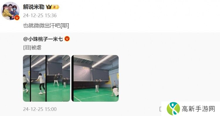 直播吧12月25日讯 LPL官方解说米勒分享与妻子打羽毛球的照片,并配文:也就微微出汗吧