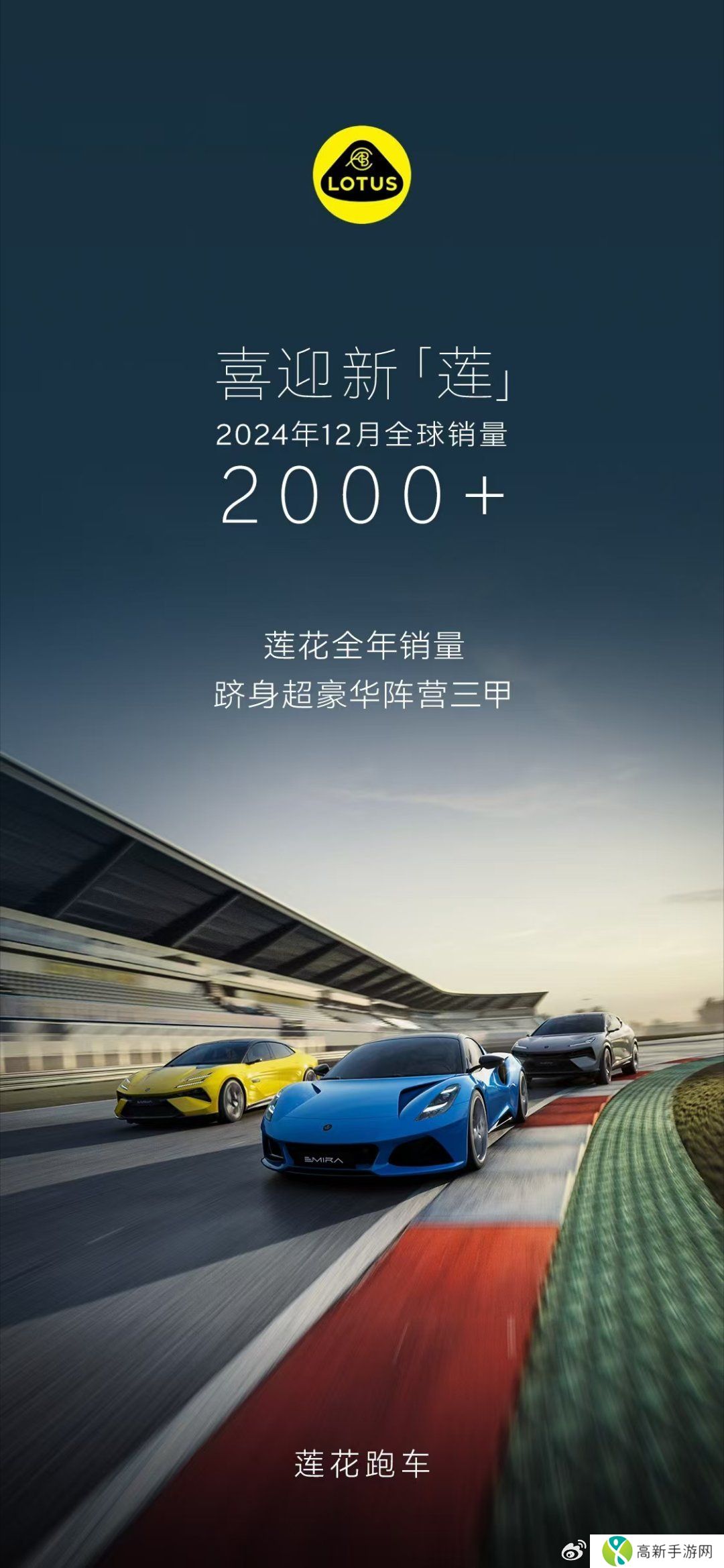 本站 1 月 1 日消息,浙江吉利控股集团高级副总裁杨学良今日发文分享,2024 年 12 月,LOTUS 莲花跑车全球销量突破 2000+,创造历史单月销量最好成绩,也意味着 LOTUS 全年销量跻身超豪华品牌三甲。