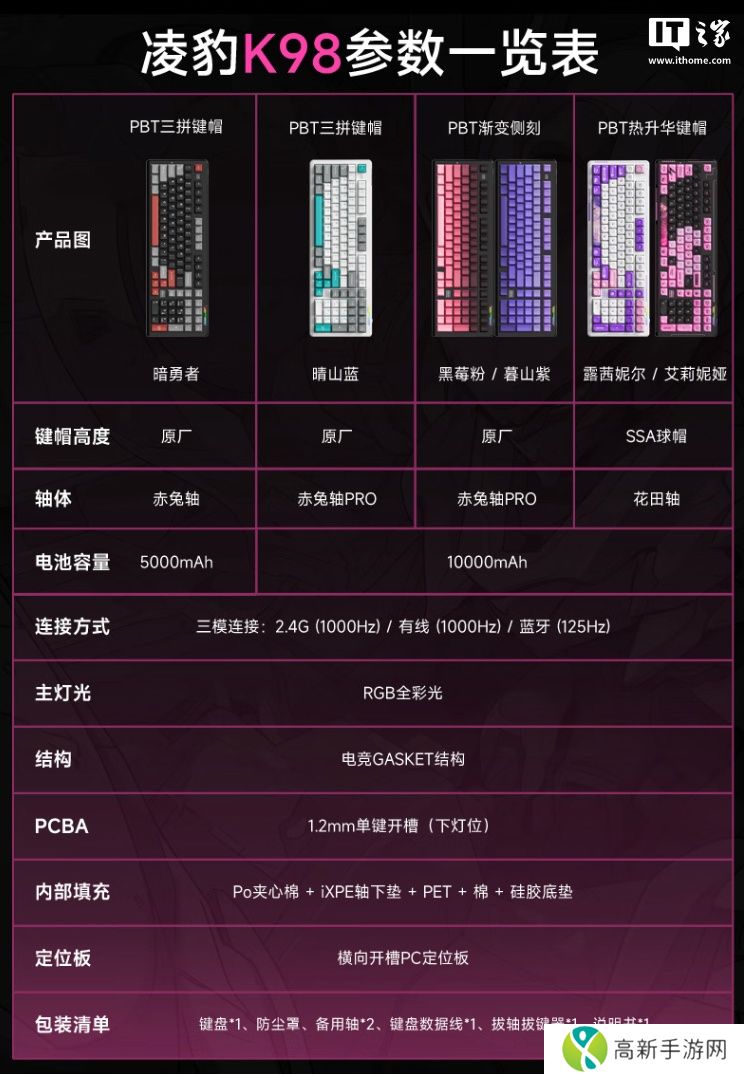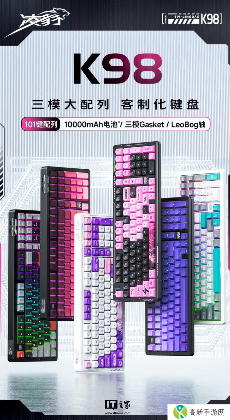 本站 1 月 10 日消息,凌豹现已在京东上架一款型号为 K98 的三模机械键盘,这款键盘采用Gasket结构,可选多种轴体,本站整理价格如下: