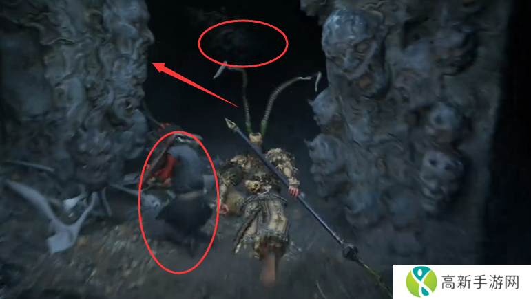 3、进入之后我们贴着左前方走,在看到一个怪物和前方的一个石菩萨头的位置左转。