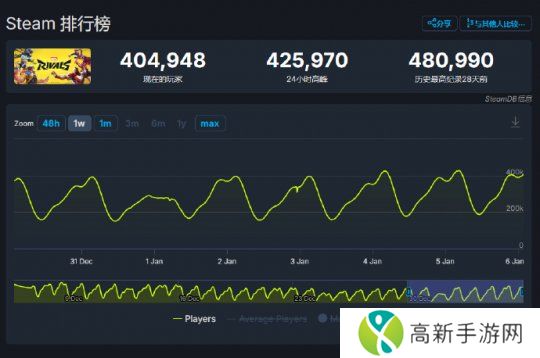 时隔一个月,SteamDB带来了最新数据,《漫威争锋》近24小时内的玩家同时在线峰值达到了42万,与一个月前开服时的的在线人数峰值差距并不大,玩家留存率达到了90%,热度保持情况和在线玩家曲线都相当出色。