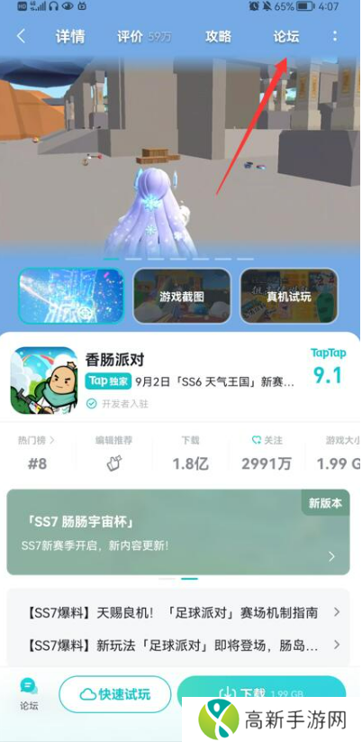 2、点击香肠派对这个游戏,点击右上角的论坛。