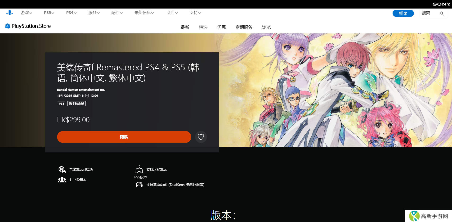 PS平台链接:https://store.playstation.com/zh-hans-hk/product/HP0700-PPSA19989_00-TALESOFGRACESF00。