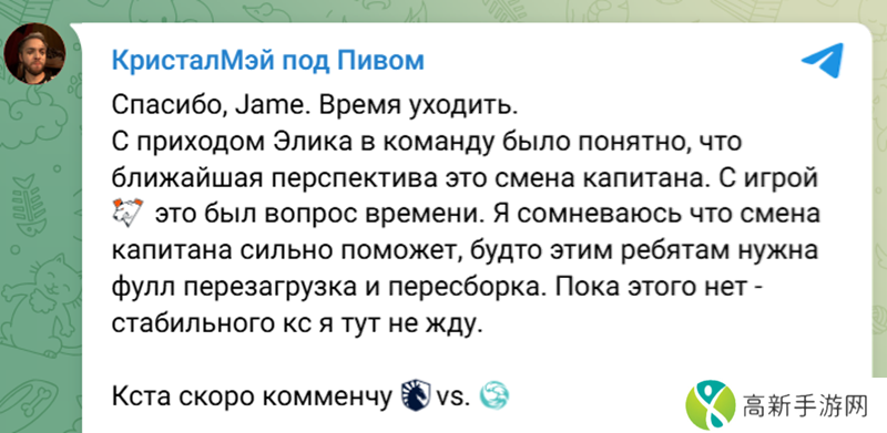 时代结束了。不管别人怎么说,但Jame非常擅长CS,并在游戏中燃烧自己。他形成了自己的风格,并证明了耐心和工作可以磨灭一切。我希望看到Jame成为一名教练。