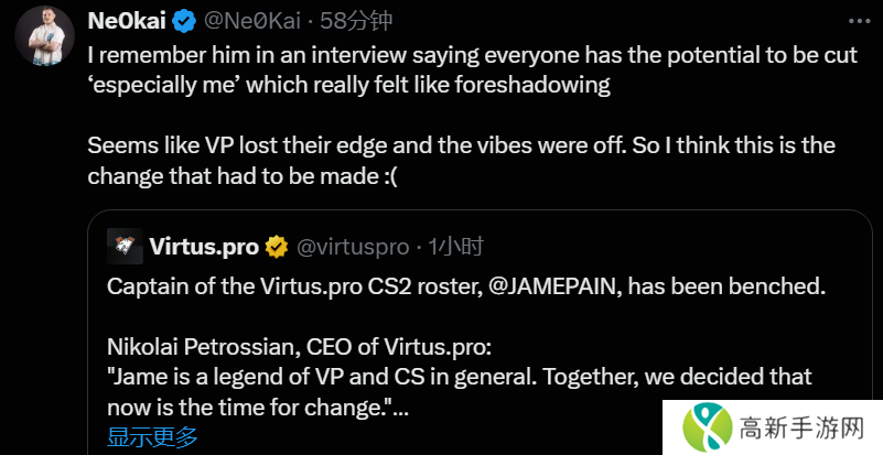 今天Virtus pro战队宣布正式下放Jame。在电子竞技风云变幻的舞台上,VP战队做出下放Jame这一决策,宛如投入平静湖面的巨石,一石激起千层浪,在玩家群体与业内引发轩然大波。以下为VP被下放之