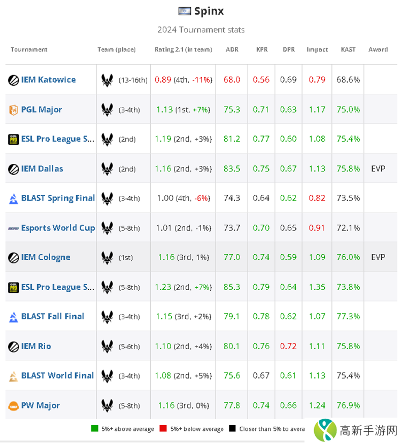 Spinx连续第三次入选TOP20选手榜单,成为本年度在赛事(13项赛事中有12项为积极作用)、地图(86.9%的地图Rating高于0.85)和回合(75.5% KAST,TOP8)方面表现最稳定的选手之一。