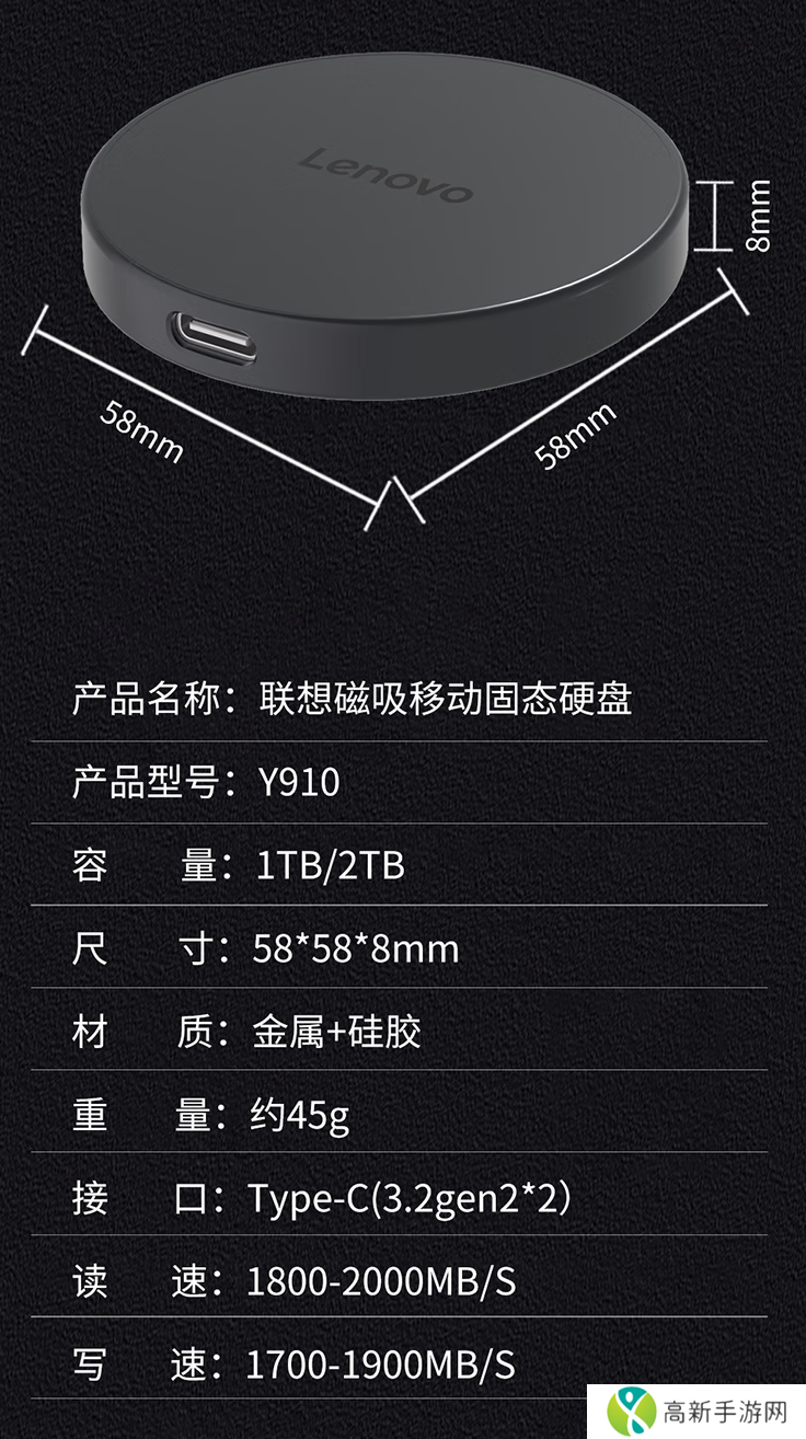本站附联想 Y910 磁吸移动固态硬盘产品参数如下: