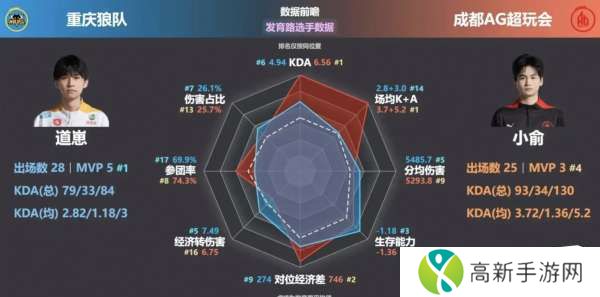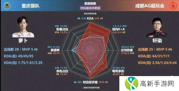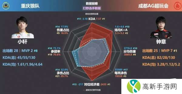 AG狼队选手对位数据雷达图,大家决赛更看好谁?