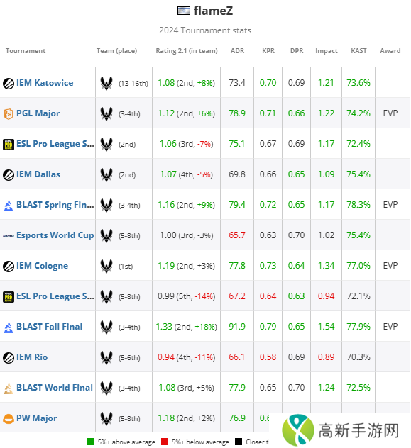 flameZ今年第二次错失VP或EVP提名,rating为0.99,但他迅速在BLAST 秋季总决赛中状态迎来复苏,这是他今年表现最好的赛事。