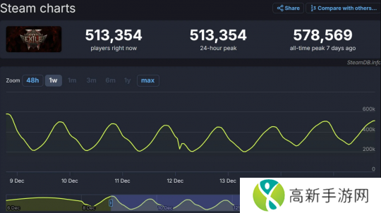 《流放之路2》由Grinding Gear Games开发,于12月6日开启了测试。虽然在官方的描述中这是一款免费游戏,但如果想要抢先体验,玩家却得先支付30美元。可即便如此,大家却依然趋之若鹜,Steam同时在线玩家始终稳定在50万左右。