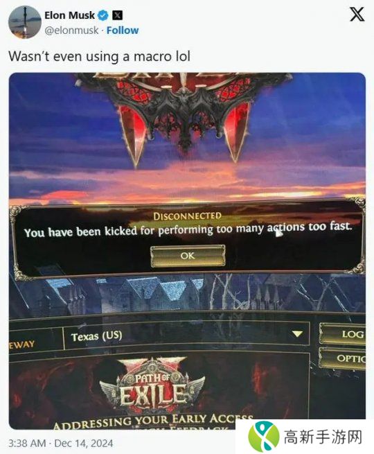 早在《流放之路2》官宣开服首日,钟爱ARPG刷宝游戏的世界首富埃隆马斯克,就宣布了自己的加入。
