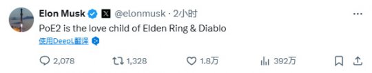 过去的两周里,马斯克的X动态多次提到了《流放之路2》。对此,他还调侃“《流放之路2》是《艾尔登法环》和《暗黑破坏神》的结合体。”也正因如此,这款“世界首富都在玩”的游戏,省下了一大笔宣发费用。