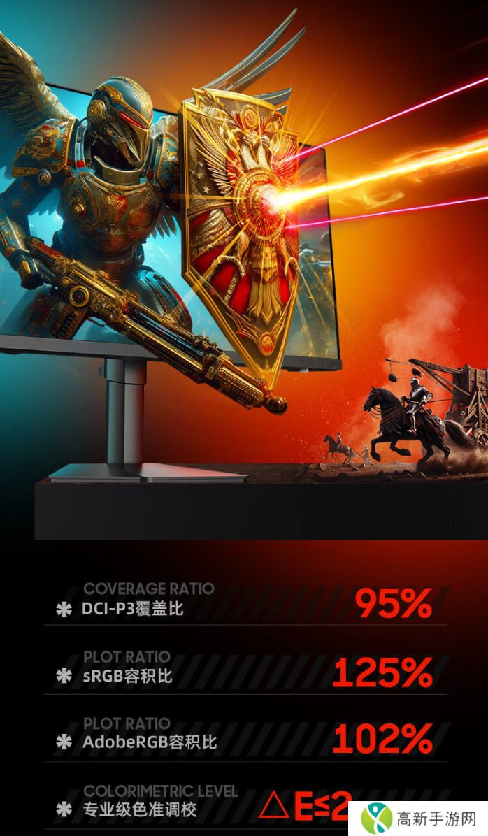 该款显示器提供 HDR 400 高动态解析功能,支持 95% DCI-P3 色域覆盖、125% sRGB / 102% Adobe RGB 容积比。显示器色准 ΔE≤2(平均值),同时支持色域缩限功能。