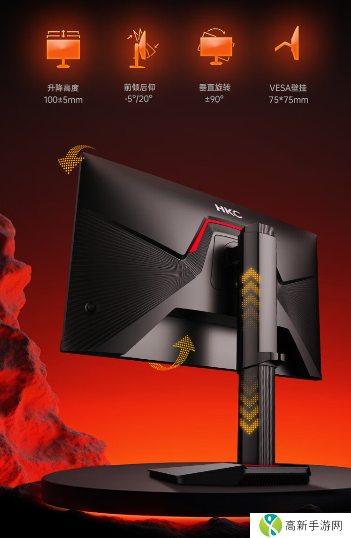 HKC“G27H2 Pro”显示器搭载自研 DIC 动态模糊消除技术,支持硬件低蓝光。显示器配备人体工学支架,支持 100±5mm 升降高度、前倾后仰-5°/20°、垂直旋转 ±90°、VESA 壁挂(75*75mm)。