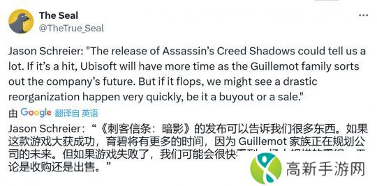 他说:“《刺客信条:影》的推出可以告诉我们很多东西。如果这款游戏大获成功,育碧将有更多的时间,因为 Guillemot家族正在规划公司的未来。但如果游戏失败了,我们可能会很快看到一场大规模的重组,无论是收购还是出售。”