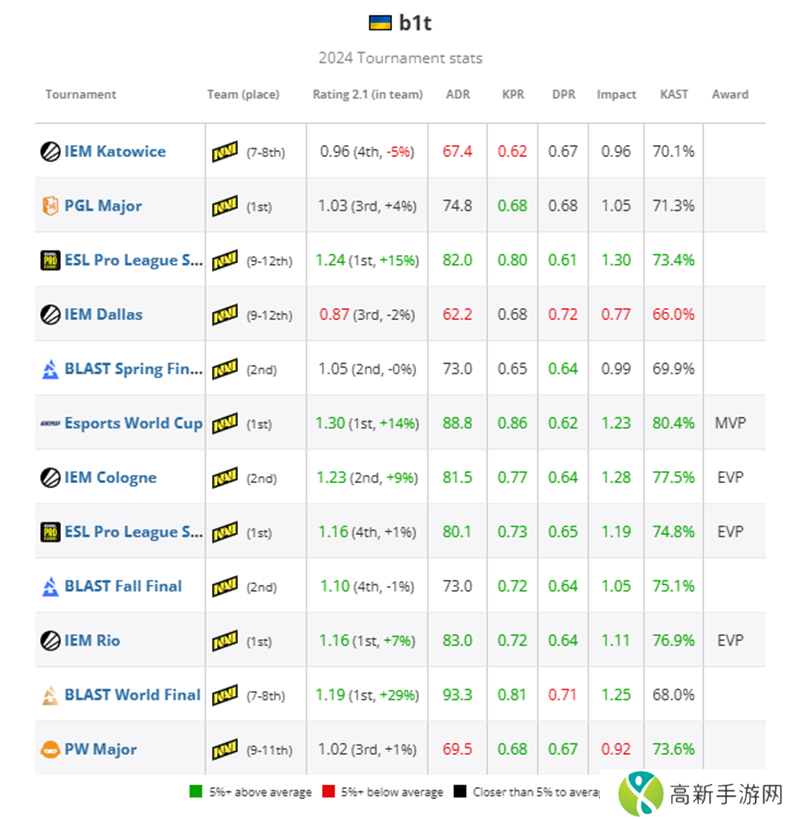 Natus Vincere在 2022年仅赢得了一项赛事——BLAST春季总决赛,但在Boombl4离队前,他们依然表现出色,分别在PGL 安特卫普 Major和IEM科隆站中获得亚军。而b1t在这几项赛事中均获得了 EVP。