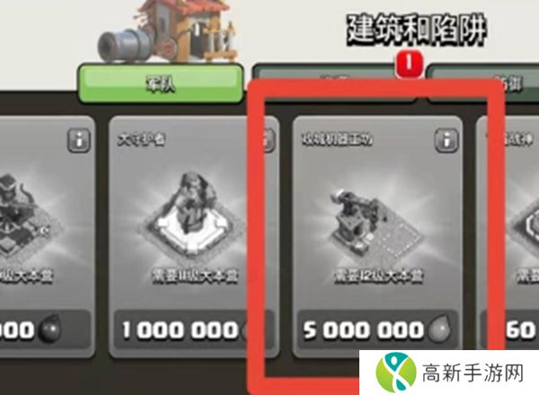 4、需满足第三条的前提条件,之后才可以花费500万圣水来修建。