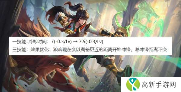 一技能冷却时间前期增加了0.5秒,这感觉削弱的力度还没有女娲大,大招狼群的冲锋距离变化影响不大,大招的核心是移动输出,这个不变大招还是强。这波调整可以算是象征性的走个过场,实际的影响可以忽略不计。