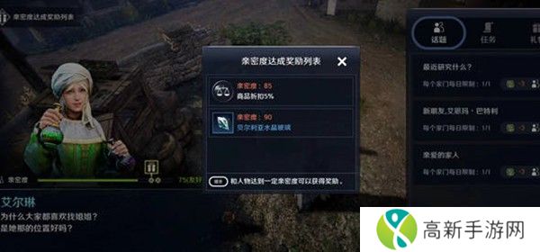 2、我们先来了Berlia,然后找到了杂货商Ellin,然后在三个选项中选择了亲密度的选项,如图;