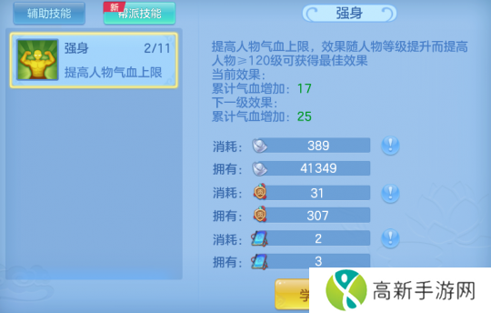 ①建设练武场可解锁强身技能的学习,技能可学习等级上限跟随建筑等级提升而提高;