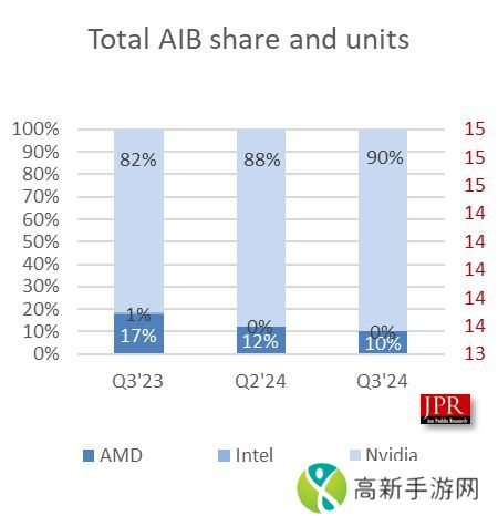 通常情况下,英伟达将其授权的厂商称为 Add-In Card (AIC) 厂商,而 AMD 授权的厂商则被称为 Add-In Board (AIB) 厂商,不过在 JPR 的报告中,泛指所有附加板显卡。