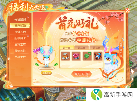 征战新服新天地,当然不能两手空空地一个劲儿往前莽啦。届时将会有首充礼包、升级1888大礼包、微信关注礼包、微信月礼包以及冲级微信现金红包等多重好礼协助你闯荡出一片新天地,首充礼包里的珍兽萌小鹿也会让你的逍遥之路更加通畅明朗。