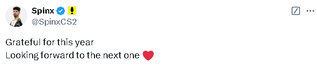 今天,2024年度最佳选手TOP13已出炉,Spinx获此殊荣。在入选TOP13后,Spinx在个人社交媒体上分享了自己获选的感受:感恩这一年,并期待明年的到来。此前有爆料称Spinx或将离开Vita