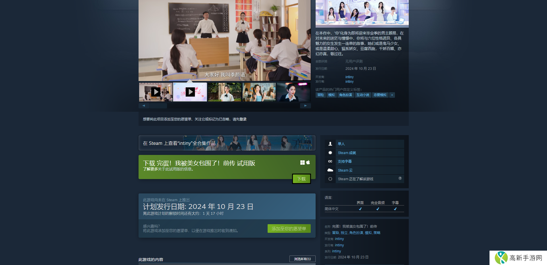 《完蛋!我被美女包围了!前传》是一款非常有趣的采用全程第一人称视角的真人模拟互动游戏,而这款游戏的下载网址就是购买平台的购买页面,比如Steam版就是在购买页面购买之后,点击页面中的马上开玩就可以开始下载了。