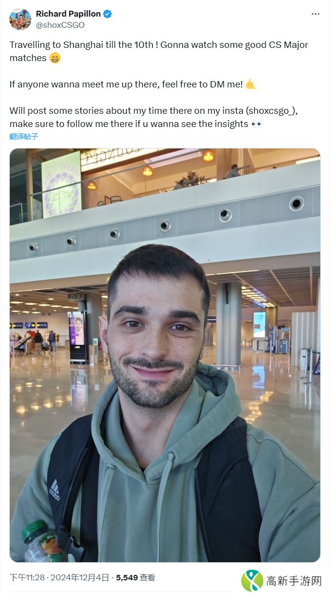 Vitality名宿shox也将要来上海观看Major。shox:“十号去上海!来看看Major有多精彩。如果有人想跟我见面,可以随时给我发私信!”shox也在社交媒体上分享了Major正赛阶段的预测