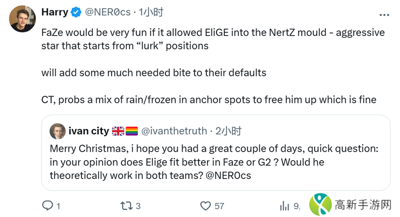 HLTV编辑NER0分享了自己对于EliGE加入FaZe可能性的看法。日前有CSer询问NER0:EliGE更契合FaZe还是G2?还是理论上在两支队伍都可以?而NER0给出了自己的答案。“如果FaZ