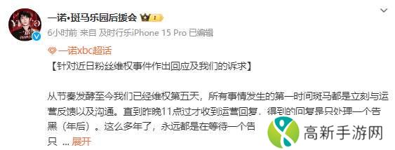 虎扑01月17日讯 一诺后援会回应节奏:队友房管夹带个人情绪,告黑要有后续原文如下:【针对近日粉丝维权事件作出回应及我们的诉求】从节奏发酵至今我们已经维权第五天,所有事情发生的第一时间斑马都是立刻与运